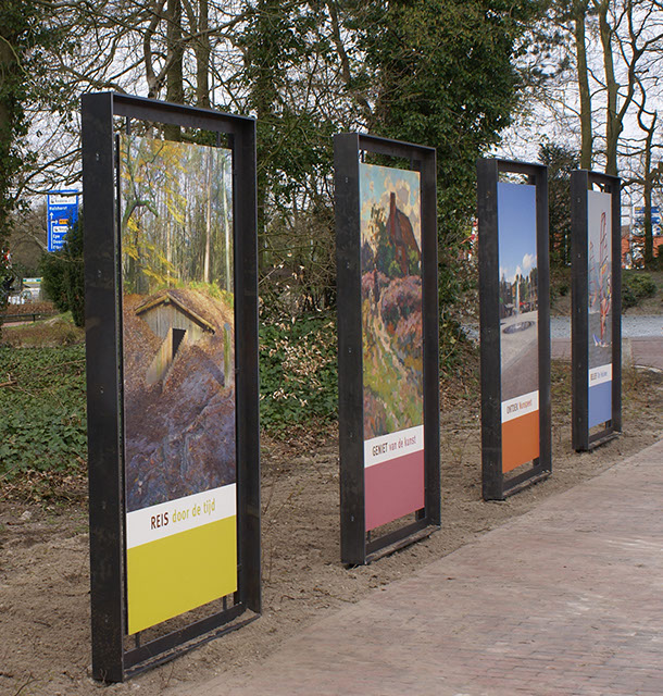 Informatieframes uit Cortenstaal kenmerken zich door hun roestige bruin-oranje oppervlak. Deze uitstraling matcht goed in natuurgebieden. Maar ook bij cultuurhistorische onderwerpen of juist op hele moderne locaties blijkt Cortenstaal passend.