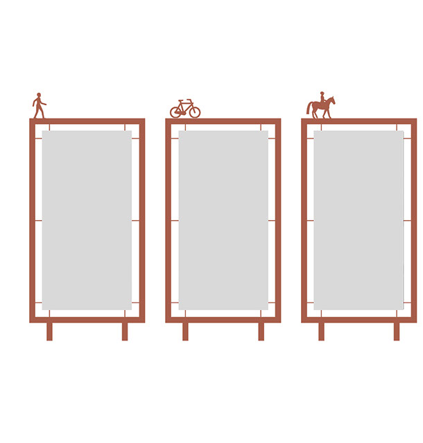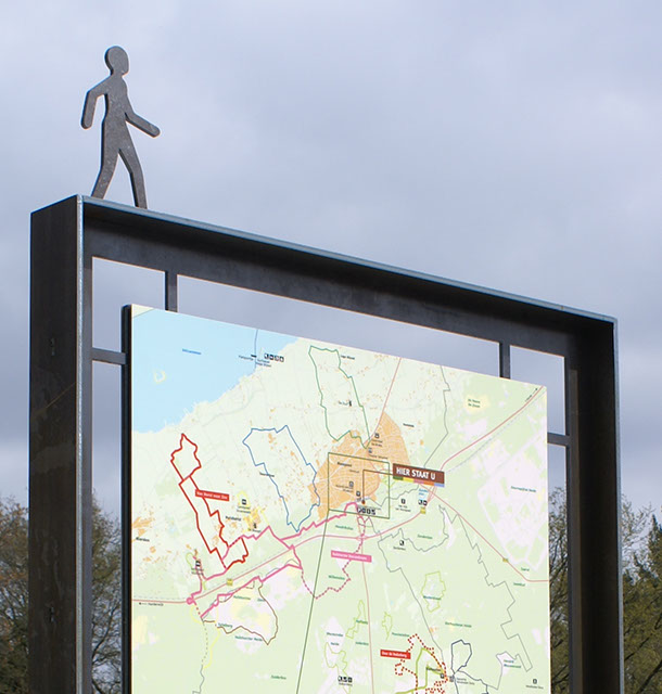 Met deze grote staande lijst trekt u de aandacht. Vooral geschikt als vertrekpunt voor diverse recreatieve routes omdat er een grote duidelijke kaart in opgenomen kan worden. Daarbij kan eventueel een onderverdeling gemaakt worden: bijvoorbeeld fietsroutes aan één zijde en wandelroutes aan de andere zijde.