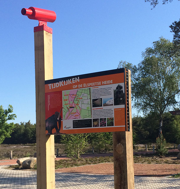 Op de paal waar de Tijdkijker op wordt bevestigd kan een nadere toelichting worden gegeven over wat er door de Tijdkijker te zien is in de vorm van een Vouwpaneel.
