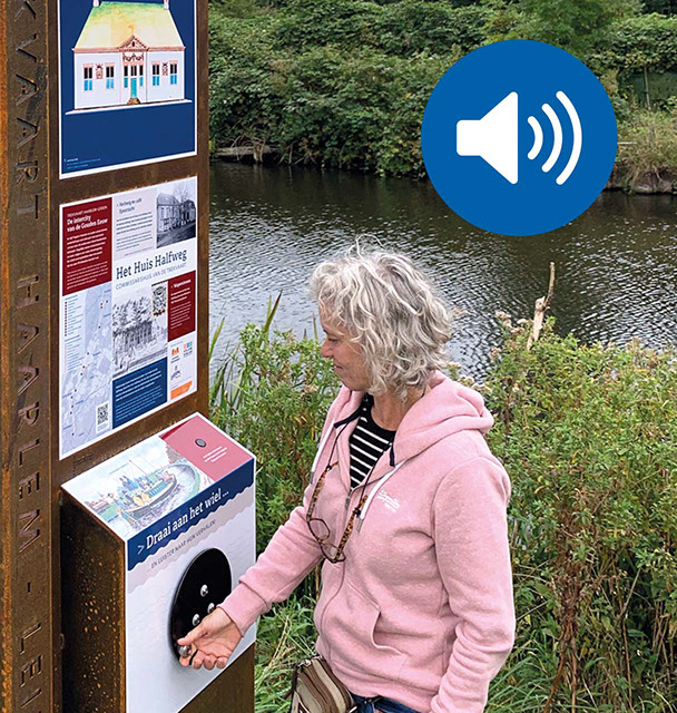 Op enkele locaties zijn er ook interactieve elementen opgenomen zoals een doorkijkpaneel, een quiz met kleppaneeltjes, een draaipuzzel en audiofragmenten waarvoor de stroom opgewekt kan worden middels het draaien aan een slinger