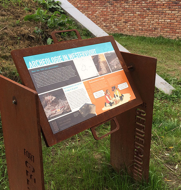 Informatieframes uit Cortenstaal kenmerken zich door hun roestige bruin-oranje oppervlak. Deze uitstraling matcht goed in natuurgebieden. Maar ook bij cultuurhistorische onderwerpen of juist op hele moderne locaties blijkt Cortenstaal passend.