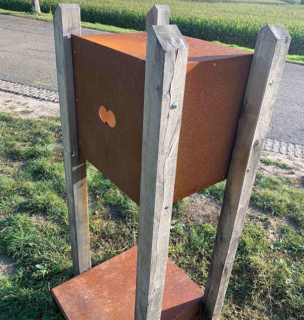 Objecten uit Cortenstaal kenmerken zich door hun roestige bruin-oranje oppervlak. Deze uitstraling matcht goed in natuurgebieden. Maar ook bij cultuurhistorische onderwerpen of juist op hele moderne locaties blijkt Cortenstaal passend.