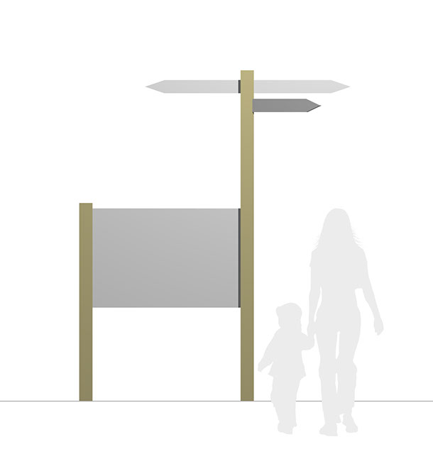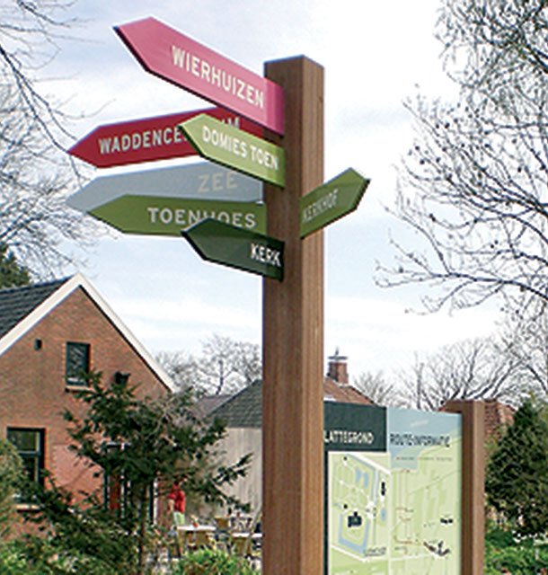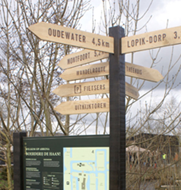 Het paneel geeft de informatie en de wegwijzers sturen de recreant of bezoeker in de goede richting.