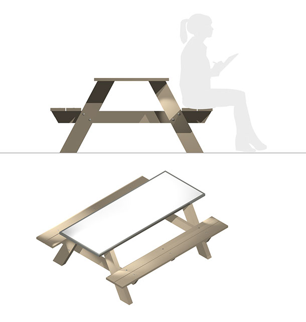 Buro Kloeg maakte vele picknicktafels leuker. Tijdens het uitrusten of eten is het leuk spelenderwijs nog iets te leren over de omringende natuur of landgoed. Kloeg ontwerpt het spel en het paneel. Steentjes, takken en dennenappels fungeren als pionnen en dobbelstenen.