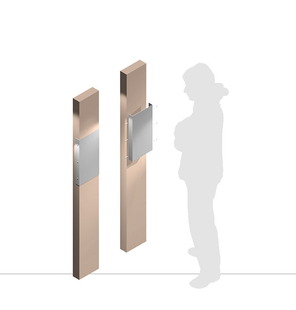 Deze panelen kunnen op allerlei ondergronden. Het grafisch ontwerp wordt direct op een dunne plaat aluminium geprint. Vervolgens wordt deze plaat om een object gevouwen, zoals hier om een robuste paal. Op deze manier wordt bespaard op framekosten, terwijl niet wordt ingeleverd op buitenkwaliteit en vorm.